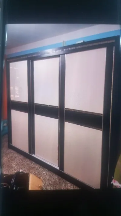 Armoire Coulissante 03 porte noir et blanc et un lit avdc matelas