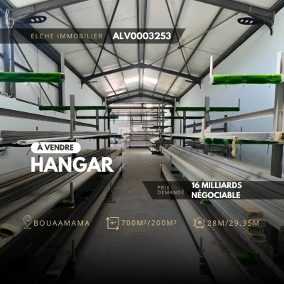 Réf : ALV0003253 📍 À vendre – Hangar avec villa intégrée à Bouamama, Oran Ce bien rare combine à la fois un hangar industriel spacieux et une villa habitable pouvant servir de