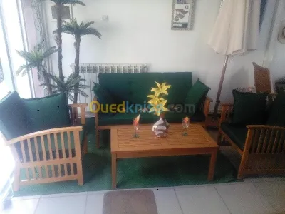 SARL samoya vous propose salon pour jardin / terrasse 100% bois massif en teck . bois traité , résistant a l'humidité , soleil , eau . un salon 4 pièces . produit importé d'origine Mala