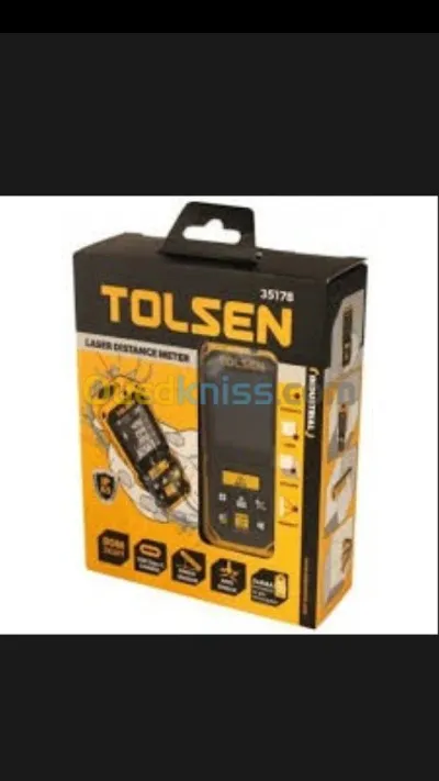 Mesure de distance Tolsen avec : +/- 1,5 mm. Type de laser: 635 nm, moins 1 mW, classe 2 Mesures historiques: 50 valeurs. Résistant aux éclaboussures / protégé contre la poussière: IP54