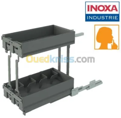 * Pour les prix professionnels : nous consulter Le produit: Ferrure pour meuble bas 7102K Ikona - paniers pains-bouteilles - INOXA Sortie totale. Coulisses à billes avec système d'a