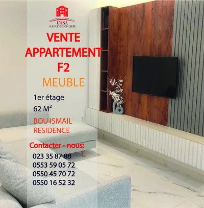 A VENDRE: BOU ISMAIL - PROMOTION - F2 REFAIT A NEUF - MEUBLE -1ER - 62M². Bou Ismail, dans un quartier calme, Casa Immo met en vente un appartement "MEUBLÉ" de type F2, refait à neuf ave