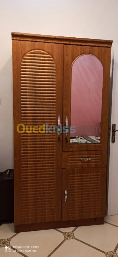 Salam ; Je mets en vente un très bel armoire en bois rouge avec 4 portes coulissantes 2 avec mirroir mesures 2,40*2,20 en très bon état comme neuf. Merci