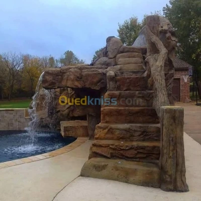 Conception et réalisation de faux rochers, grotte,toboggan, Cascade d'eau en faux rochers ,fausses pierre ou pierre naturelle. travail de qualité et prix abordable