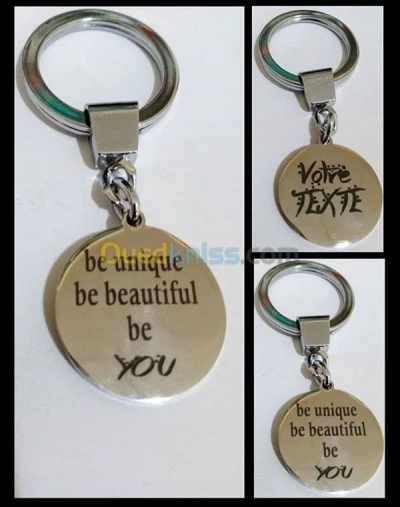 porteclès avec texte personalisè en acier inoxydable de haute qualiite. Acier inoxydable garanti Personalisation avec gravure de laser Noms Prenoms date chiffre lettre
