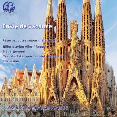 Barcelone vous attend avec son soleil, son architecture unique et ses saveurs méditerranéennes 6 jours 5 nuits A partir de 183 000 da par personne Inclus : Billet aller retour / l'hôte
