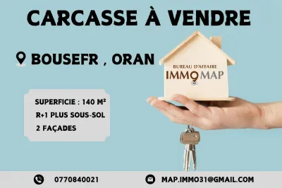 🏡 Opportunité Unique à Bousfer – Oran ! 🏡 Le Bureau d’Affaires IMMO MAP vous propose une CARCASSE à vendre : 📍 Emplacement : Bousfer, Oran 📐 Superficie : 140 m² ✅R+1