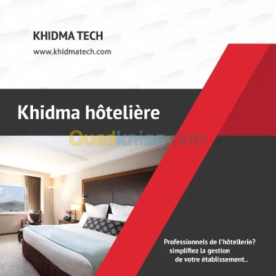 Bonjour , Khidma Tech as le plaisir de mettre a vos disposition un Logiciel de gestion pour les etablissements hôteliers ( Dortoirs , Motels , Hôtels , Complexe Touristiques ) , un