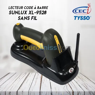 Lecteur code à barre mobile SUNLUX XL-9309 Scanner Code à Barre sans fil laser. * 300m distance de communication. * 1 châssis de base peut prendre en charge 99 scanners. * Assure