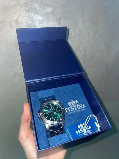Montre Festina originale en excellent état presque neuve Vendue avec boîte et étiquette d’origine Design sportif et élégant bracelet en acier inoxydable