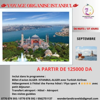 Istanbul JANVIER/ FÉVRIER 2026 Istanbul a 120 000 DA Avec Turkish Airlines pour 7 nuitées 8 jours Nos Départs Du 09/01 Au 16/01 Du 16/01 Au 23/01 Du 23/01 Au 30/01 Du 02/02 Au 09/02 D