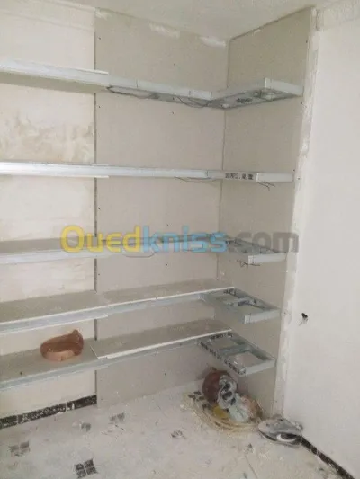 Notre métier : Placard en Placo plâtre Plafond Décoratif Faux plafond démontable lumière étudiée ⚡️ Plafond Simple Dressing en Placo plâtre Séparation en Placo Plâtre étagèr