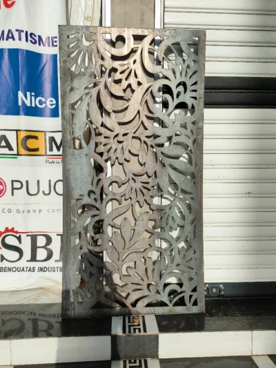 Découpe plasma des panneaux métallique pour décoration intérieur et extérieur, un catalogue très riche en motifs, et possibilité de vous faire vos propres motifs. Pause et fou
