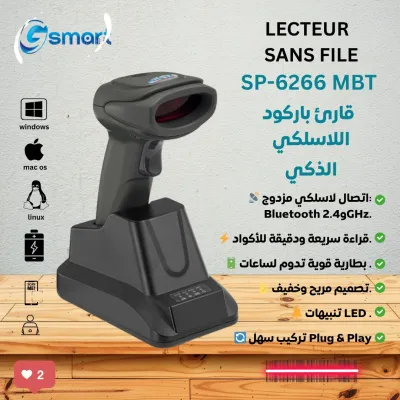 الـ SP-6266MBT قارئ باركود لاسلكي يدعم تقنيات Bluetooth و2.4GHz، مثالي للعمل في المتاجر، المخازن، ومراكز البيع بالت�