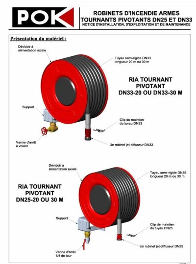 #SARLMAHYD ***vente matériels hydraulique et anti-incendie *** RIA pivotant tournant # Français diamètre : 33/30 m ; 25/30 m