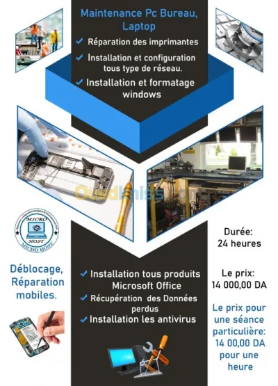 Formation réparation Micro-Portable & Mobile & PC. pratique 100/% tarif étudiant pour plus d'information contacté