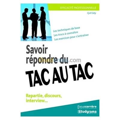 Titre : Savoir répondre du tac au tac : Répartie, discours, interview Auteur : Cyril Gely Editeur : Studyrama Année : 2009 Théme : Economie Et Sciences De Gestion Sous-théme : Développ