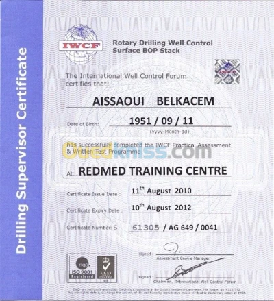 *Well Control preparation only. *Contact par e-mail for registration : [email protected] Aissaoui belkacem International Petroleum Consultant & Training Centre Managing Director