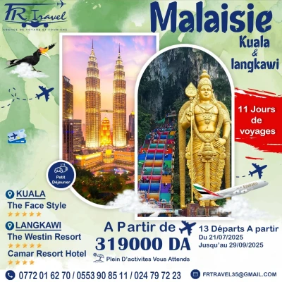 01/11/2023 au 08/11/2023. / 15 PLACE DISPONIBLE 08 Jours 7 nuits Hôtel 4 #GRAND_ASIYANE ........................ Billet avec Air Algérie Plan de Vol : (Meilleur plan de vol) Départ