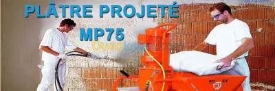 la projection mécanique de plâtre MP75 ou bien colpa avec machine PFT G4.
