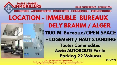 Loue Immeuble Bien situé.... Accès Autoroute Facile... Espace Bureaux 1100.M² en OPEN-SPACE... PLUS Top Logement HAUT-STANDING... Parking 22 Voitures... Ascenseur et Toutes Commodités di