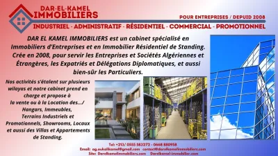 Vend un Top Site de 2500.M²… situé à la porte de la Ville d'ORAN sur un Secteur de Vocation Commerciale et Industrielle… parfait pour Direction et Distribution… IMMEUBLE Modern ave