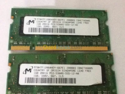 RAM DDR2 1 Go pour PC Portable – En parfait état Je vends deux barrettes de RAM DDR2 de 1 Go pour PC portable. Caractéristiques principales : Type de RAM : DDR2 Capacité : 1 Go Éta