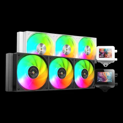 ML-LCD360 Liquid Cooling ARGB The AIO ML-LCD360 liquid cooling system is the perfect combination of efficiency and style. With three 120 mm FDB fans with ArgB lighting, it guarantees a highe