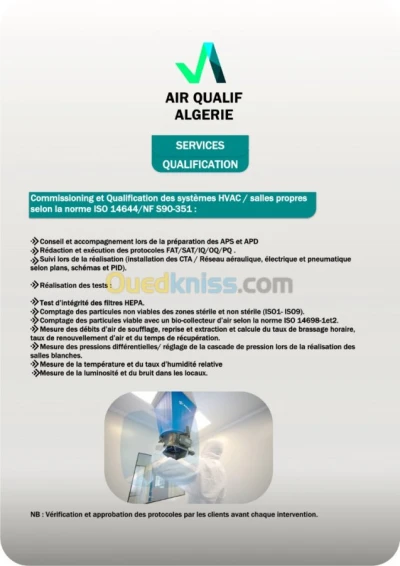 Bonjour, La société de validation de système, elle fait la qualification IQ, OQ, PQ des appareils et des équipements de laboratoire; La qualification des salles blanches ......... L'é