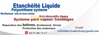 مرحبا،نحن نقدم تقنية جديدة ضد تسلل المياه من أسطح المبانيي و الرطوبة مع ضمان لمدة 15 سنة يوجد 5 انوع من لال