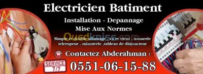 Electricien batiment habite a El Biar alger pajor de promo disponible : Spot - installation- cablage electrique Très bonne maîtrise des installation Electrique : - prise - sonnette