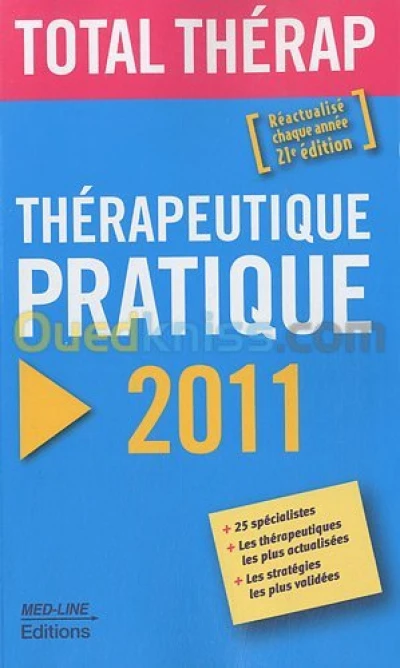 Titre : Thérapeutique pratique 2011 Auteur : Serge Perrot Editeur : Med-Line Année : 2011 Théme : Médecine Et Paramédical Sous-théme : Guides Thérapeutiques ISBN : 9782846781176