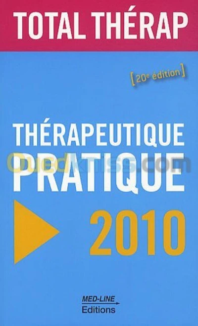 Titre : Thérapeutique pratique 2010 Auteur : Serge Perrot Editeur : Med-Line Année : 2010 Théme : Médecine Et Paramédical Sous-théme : Guides Thérapeutiques ISBN : 9782846781107