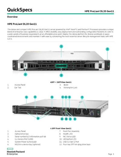 ✅Caractéristiques techniques — HPE ProLiant DL20 Gen11 + Xeon E-2414 ✅Modèle / Référence HPE ProLiant DL20 Gen11, réf. P65393-B21 ✅Format 1U rack ✅Processeur 1 × Intel Xe