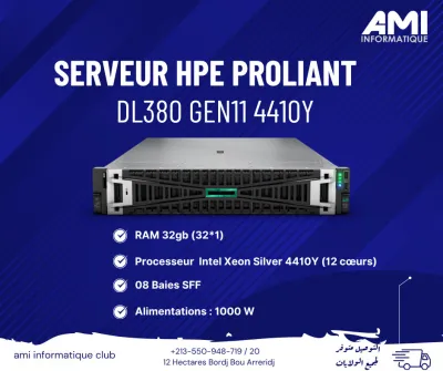 🔹 Serveur HPE ProLiant DL380 Gen11 – CPU 4410Y🔹 💻 Serveur rackable 2U dernière génération, conçu pour les entreprises exigeantes. 🔧 Caractéristiques : • Modèle : HPE Pr
