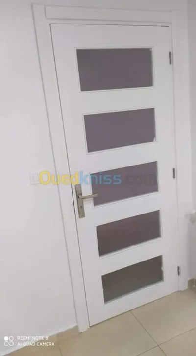 Vend une porte vitrée neuve avec son cadre bois rouge peinte en blanc