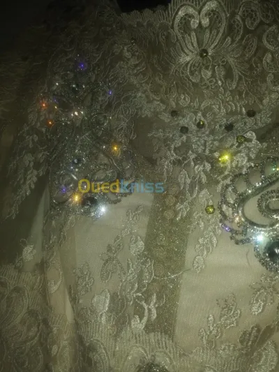 Caftan avec doublure perlée couleur saumon jamais porté de taille standard (prix 26000 da). Chaussure pour fête pointure 39 (prix 2800 da).