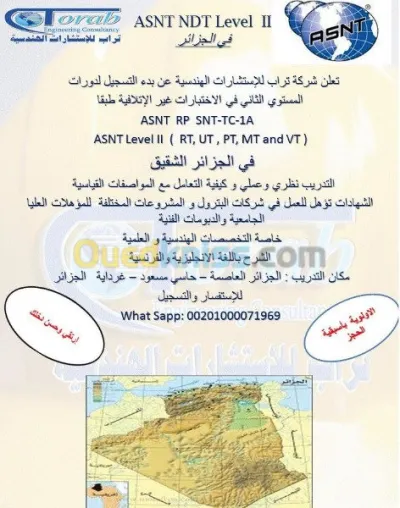 #Formation • Formation CND (RT.PT.MT.VT.UT) niveau I selon SNT-TC-1A • Formation CND (RT.PT.MT.VT.UT.TOFD.PA) niveau II selon SNT-TC-1A • Formation ASME VIII div.1 & ASME B31.3 �