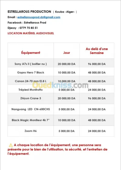 EURL MONCEF EDITION ET DISTRIBUTION DE PRODUIT AUDIO-VISUEL vous propose des services de location de processus audio-visuel spécial matériel professionnel production qui répond à vos