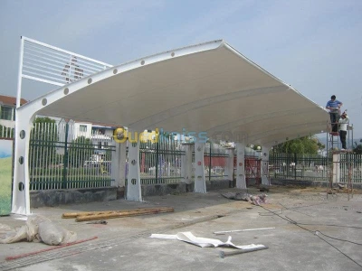 Fabrication et installation d'abris pour voitures et de tentes de divers types et couvrant des zones de piscines et autres