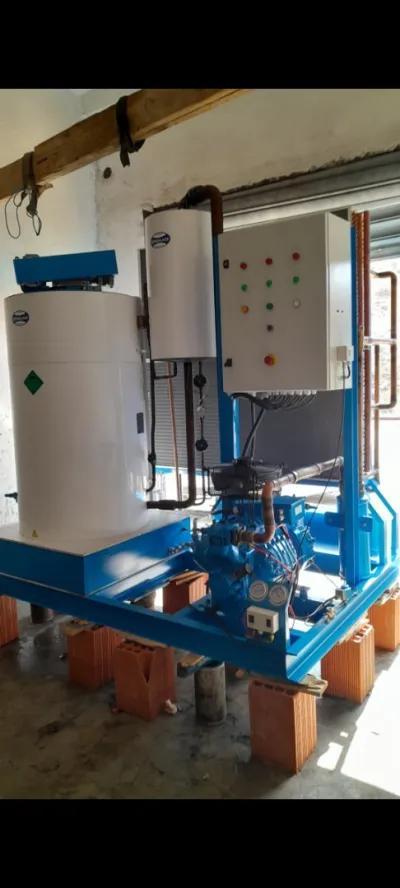 Bonjour je mets en vente deux machines a glace en ecaille 16 tonnes/24h ( 8tonnes par machine ) compresseur Bock Generatrice ( Genie Glace ). Le tout montées en tunisie (Afrique Froid ) Ar