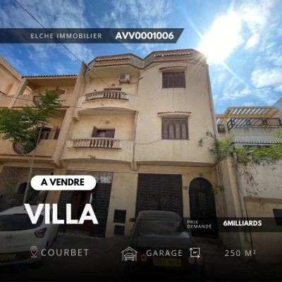 REF : AVV0001006 A vendre une villa d’une superficie totale de 250 m², R+2 et ,façade de 8,8m , 6 pieces , Garage 2 voitures , située a courbet gambetta, Oran. -acte notarié Commodit�