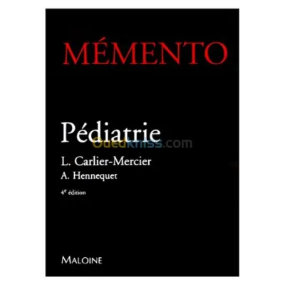 Titre : Mémento Pédiatrie, 4e édition Auteur : Laure Carlier-Mercier Editeur : Maloine Année : 1999 Théme : Médecine Et Paramédical Sous-théme : Pédiatrie ISBN : 9782224025953