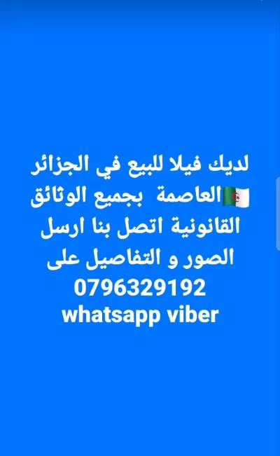 لديك فيلا للبيع في الجزائر 🇩🇿العاصمة بجميع الوثائق القانونية عقد ملكية فردي دفتر عقاري اتصل بنا ارسل
