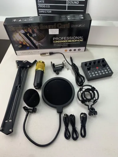 🎤 طقم ميكروفون احترافي BM800 + بطاقة صوت V8s ✨ تمتع بصوت نقي واحترافي للبث المباشر، الغناء، التسجيل والبود�