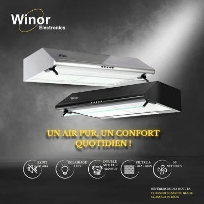 Hotte aspirante winor 90cm Inox Noir Garantie 2 ans Livraison disponible 58wilaya payement à la livraison