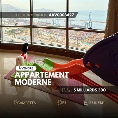 🔸 Réf : AAV0003427 🏡 Appartement T6 moderne, meublé et équipé à vendre – Gambetta, Oran (Tours Mobilar) À vendre, un superbe appartement moderne de type T6, entièrement meub