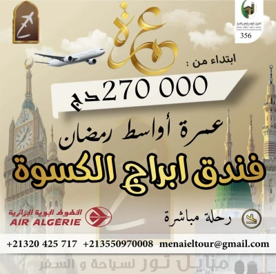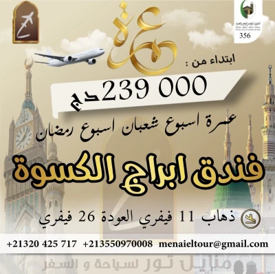 🤩🤩تعرض عليكم وكالة منايل تور أقوى عروض عمرة اواسط رمضان ، بإقامة لمدة 16 يومًا، وبرحلة مريحة عبر الخطوط