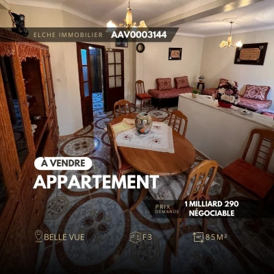 🔶 Réf : AAV0003144 🏢 À Vendre : Appartement F3 – belle vue, Bir El Djir, Oran Appartement d’une superficie de 85 m², avec deux façades et balcon. ✨ Caractéristiques princ