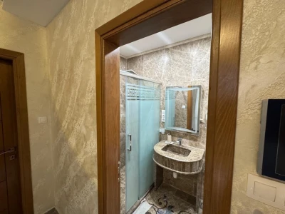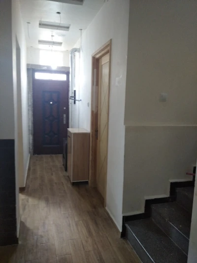 سكن أرضي للبيع ،به طابقين ، مجهز بحمام بخاري وتدفئة مركزية ، الطابق الأرضي به محل تجاري و غرفتين ومطبخ م�